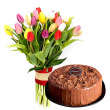 Eye-catching Tulip Bouquet with Delicious Chocolate Cake